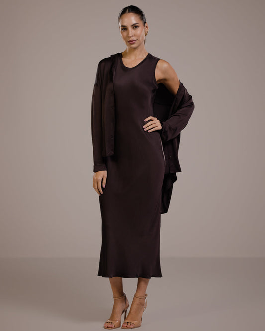 SAVE 20%Kailin Satin Shirt | Espresso Brown