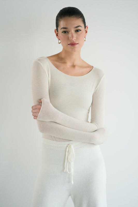 Mae Featherweight Boatneck Top | Ivory | Modal-Cashmere