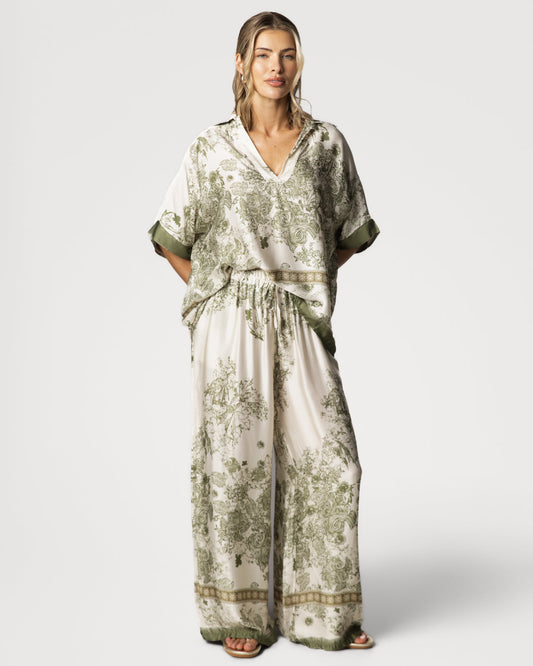 Ottilie Elastic Waist Silk Trousers | Khaki