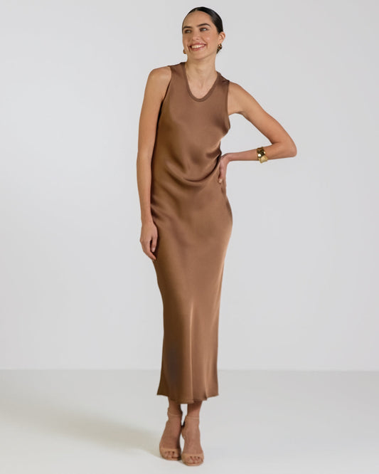 Sabrina Sleeveless Satin Maxi Dress | Cocoa Soleil