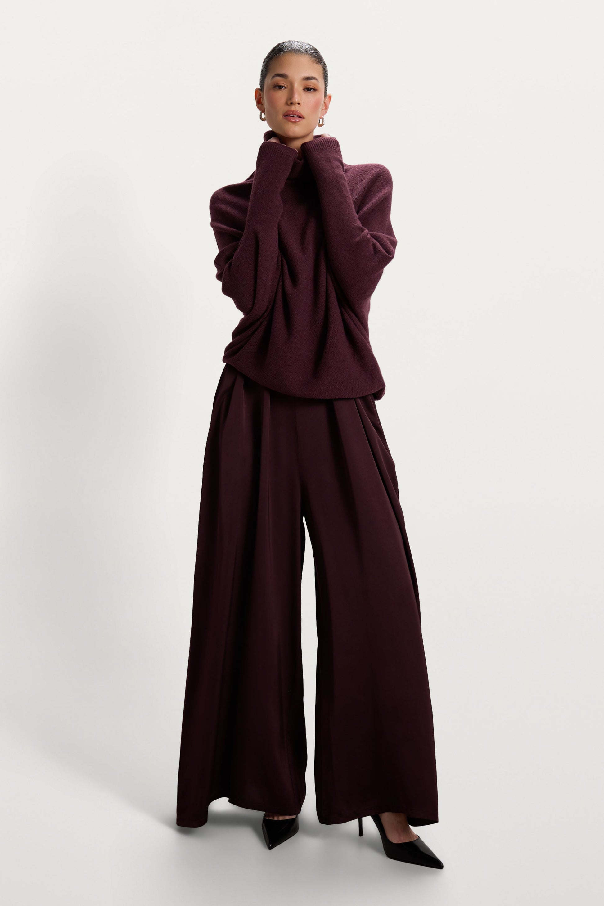 Meet the roll neck evolution of our iconic Asymmetric Draped Sweater.