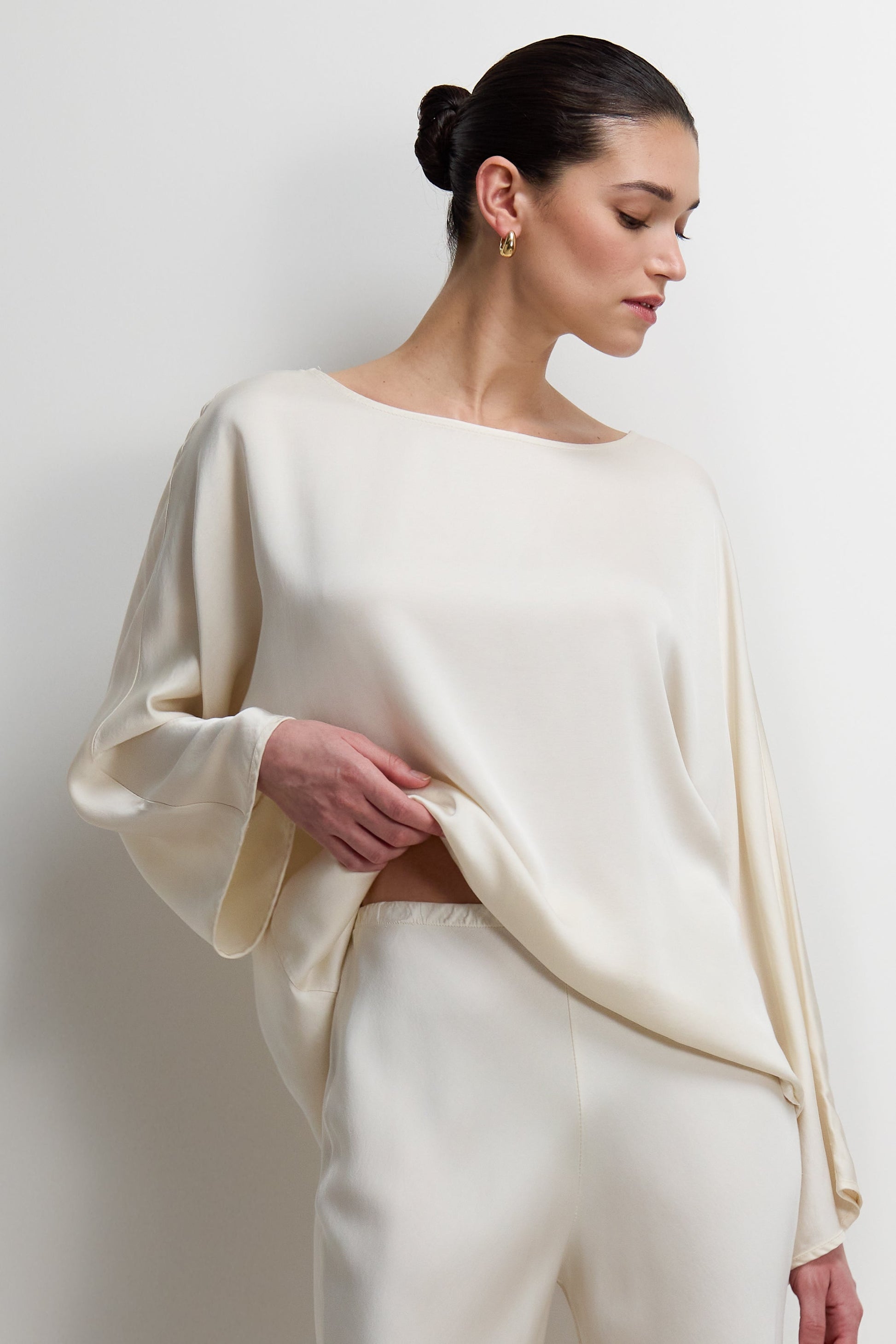 Genet Elastic Waist Bias Satin Trousers | Ivory