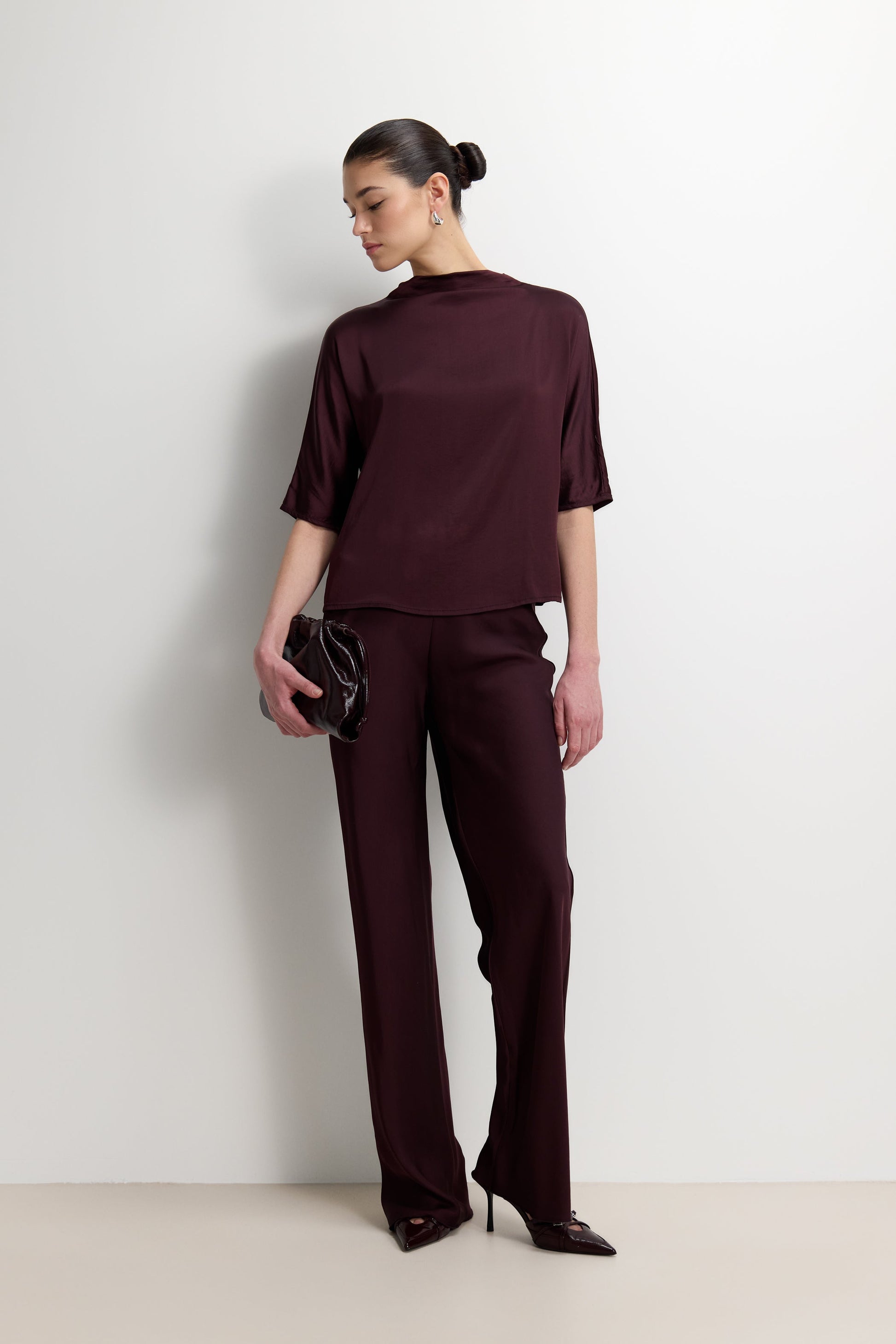 Genevieve Back Tie Satin Top | Amethyst Plum