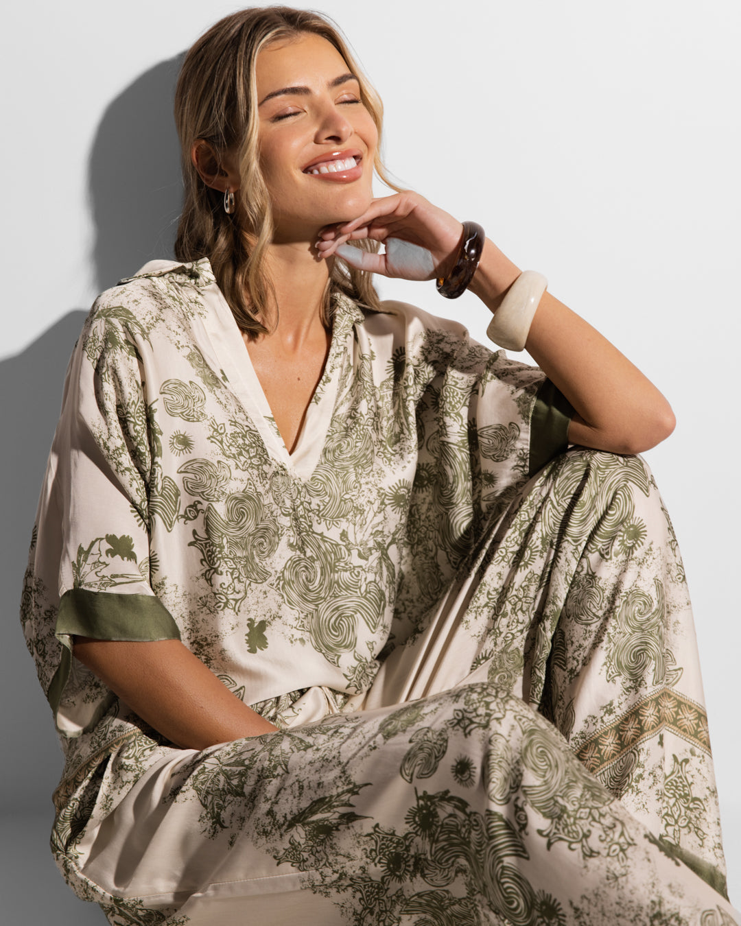 Ottilie Elastic Waist Silk Trousers | Khaki